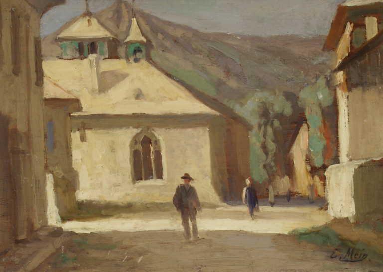 L’église, vue par derrière, se détache sur la Pointe de Marcelly.